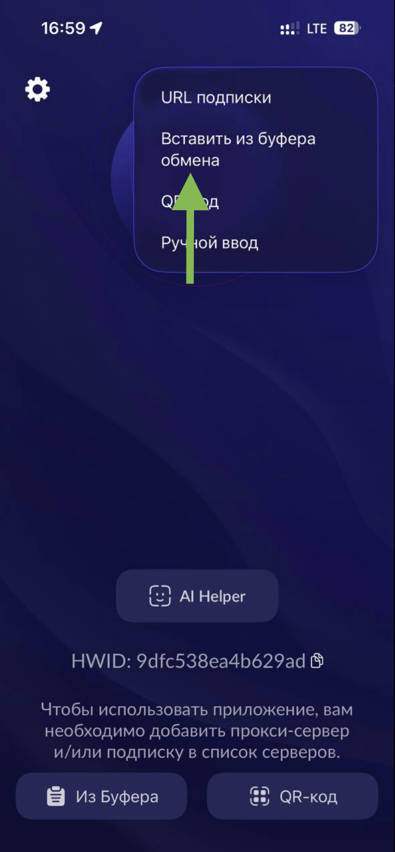 Нажмите на синюю кнопку «Добавить из буфера» в центре экрана