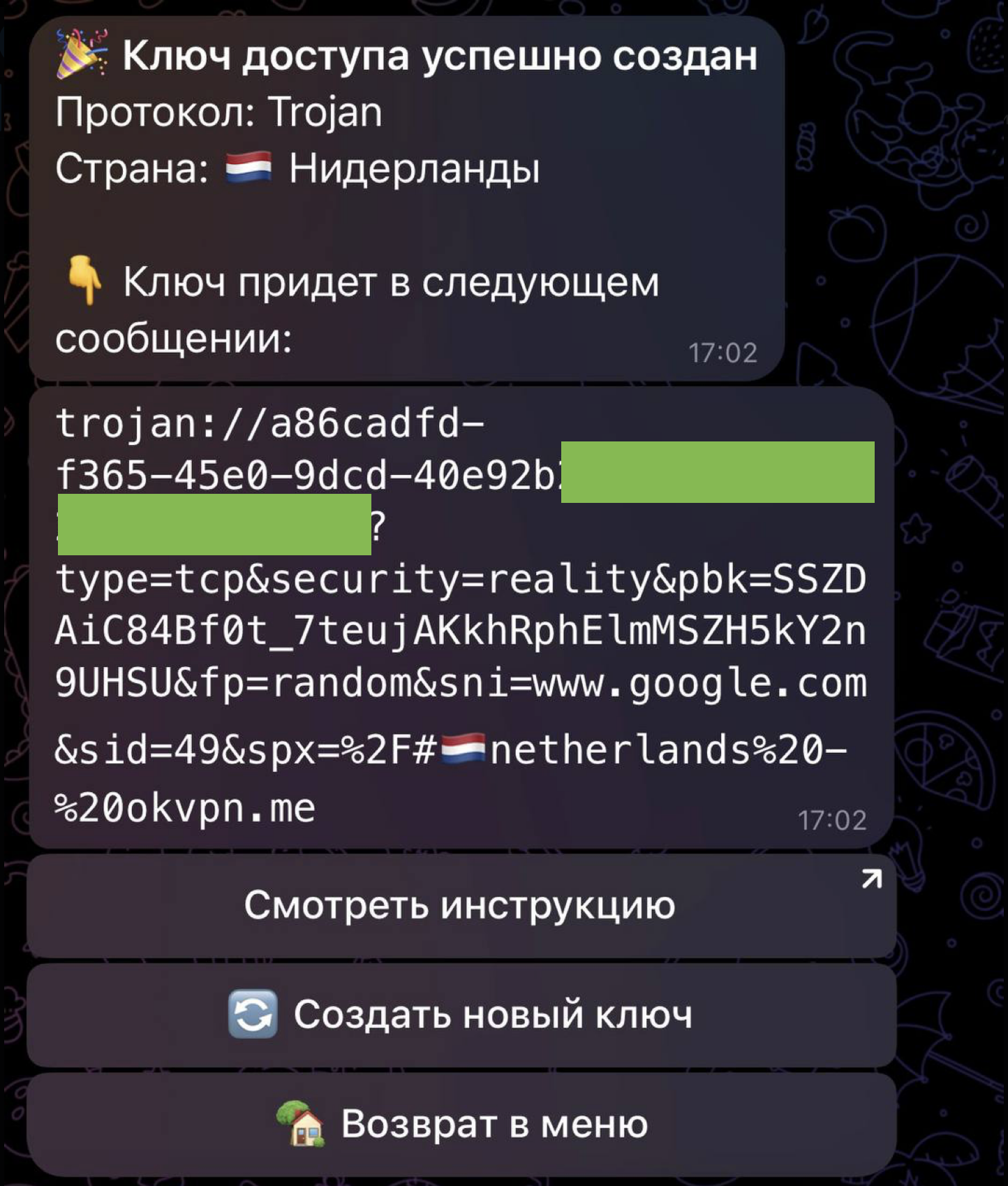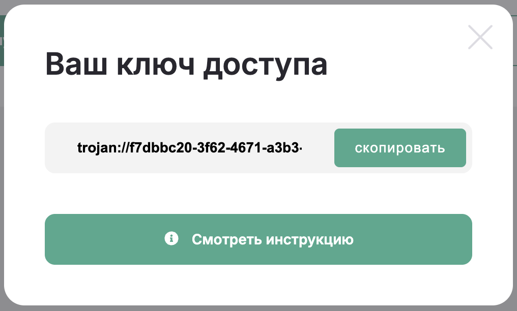 - Нажмите на кнопку «🔑 Получить ключ доступа»